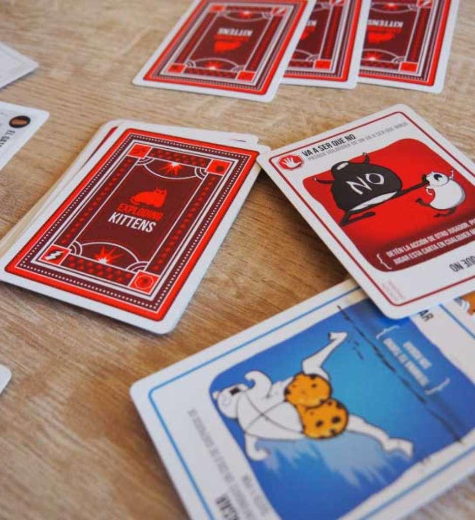 Exploding Kittens es un juego de cartas rápido, caótico y lleno de humor absurdo. Intenta evitar a los gatitos explosivos usando cartas especiales para esquivar, mirar el futuro o sabotear a tus rivales. Partidas cortas, reglas simples y diversión garantizada.
